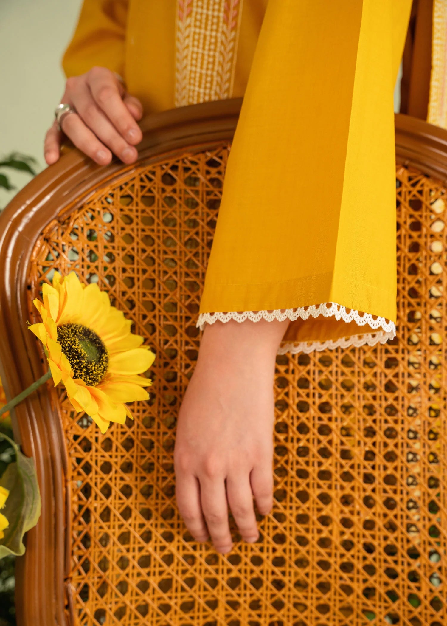 A stylish mustard-colored 3-piece dress crafted from premium linen fabric. The outfit features a beautifully tailored shirt with subtle embroidery, a matching trouser, and a soft, lightweight dupatta. Perfect for both casual and semi-formal occasions, this ensemble combines comfort, elegance, and vibrant charm.